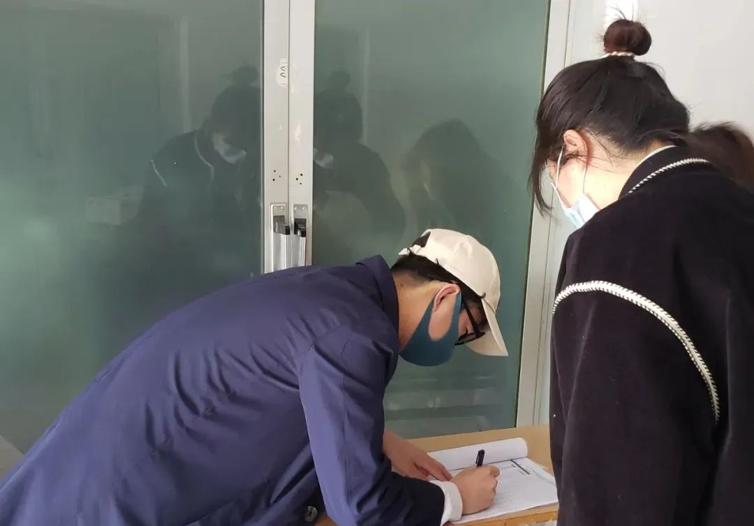 2020级李闯,主动参与公司疫情防疫工作,担任核酸抽检小组组长,宣传疫情防控知识,引导同学们科学防疫。