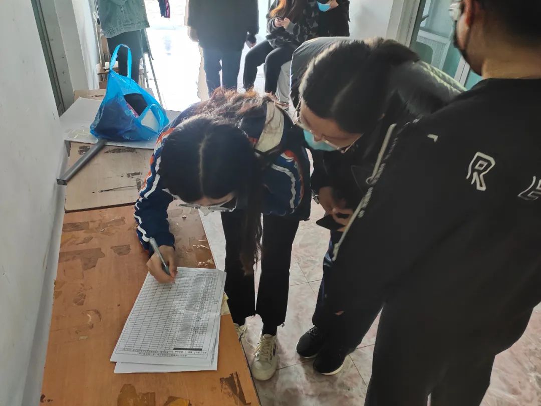 作为员工干部协助老师现场组织核酸检测,认真履行员工干部职责。