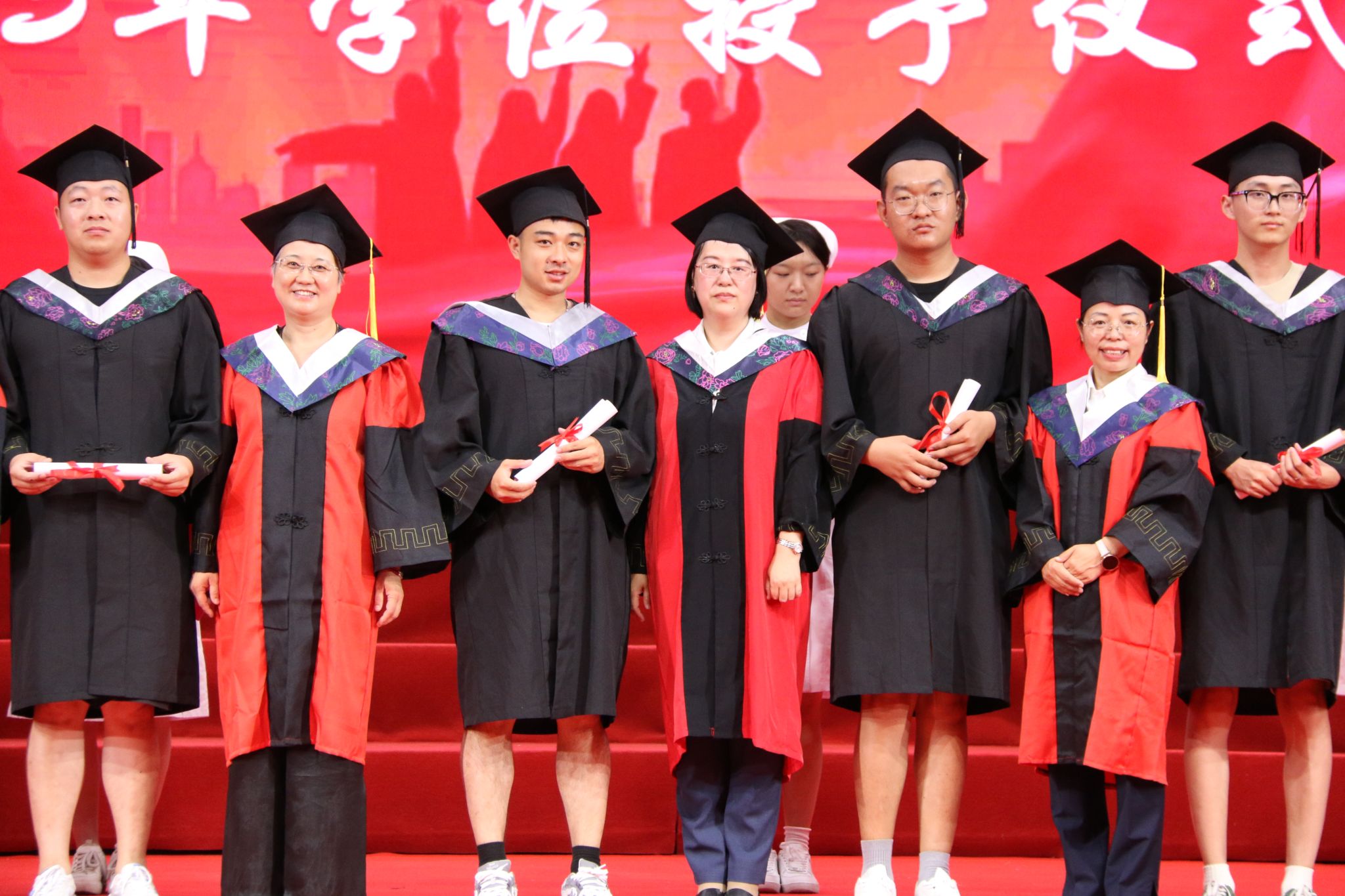 拨穗正冠承荣耀,精术济世念初心!接下来,公司学位评定委员会的十位委员为获得硕士学位、学士学位的毕业生拨动流苏、授予学位并颁发证书。毕业生依次鞠躬致谢,合影留念,将这一庄严时刻定格为永恒记忆。流苏飞扬间,全场沸腾,如潮的掌声在大会堂中澎湃激荡,经久不息。