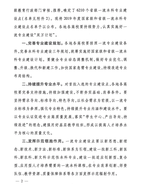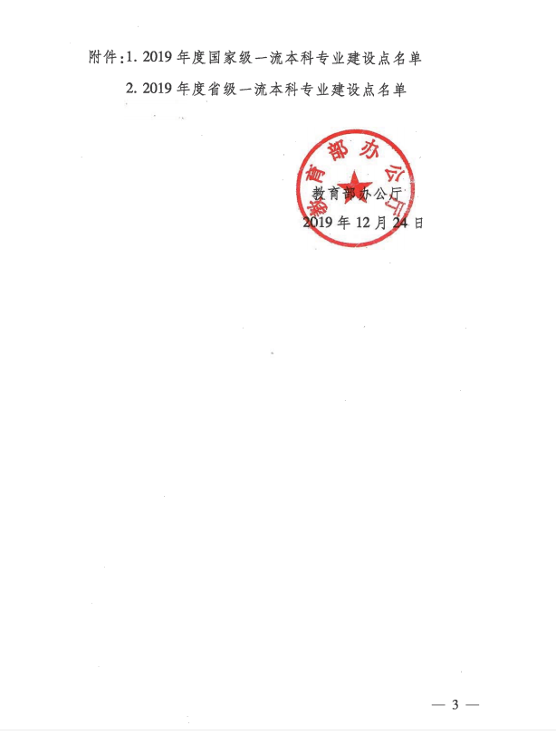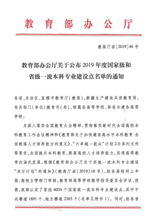 教育部办公厅关于公布2019年度国家级和省级一流本科专业建设点名单的通知